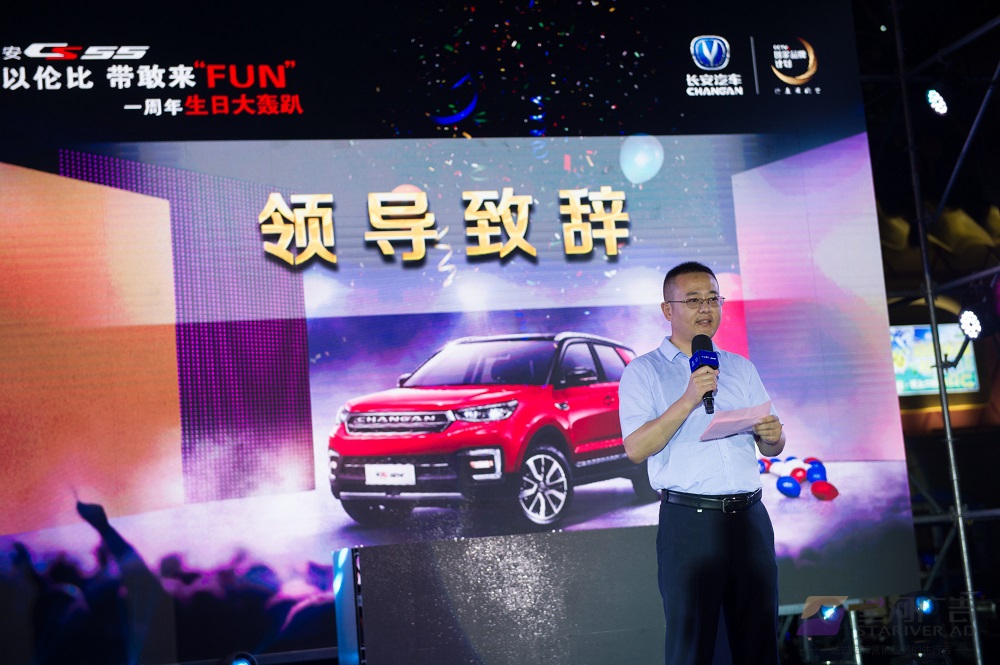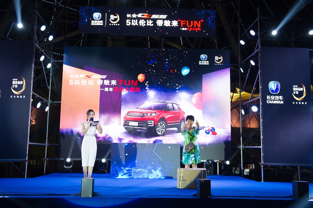 5.長(zhǎng)安汽車誠摯邀請(qǐng)了2017年7月28日購車客戶上臺(tái),發(fā)放一周年禮品,此外,與領(lǐng)導(dǎo)共同切開CS55生日蛋糕,為CS55慶生。