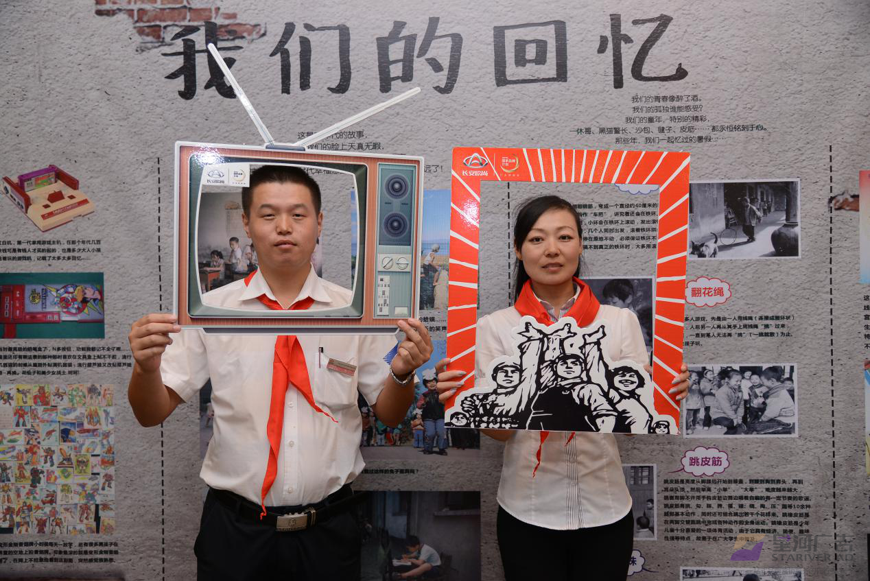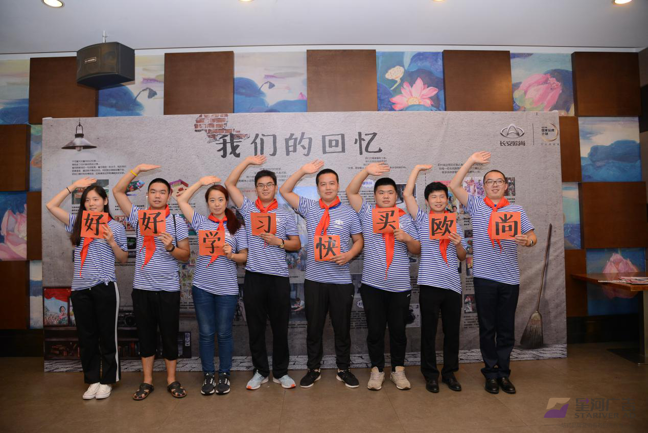 整場團(tuán)購會(huì)以70后、80后為主題,場地布置大小之處無不體現(xiàn)著濃濃的懷舊風(fēng),分分鐘穿越回二三十年前的趕腳:兒時(shí)的教室,最愛的美食,統(tǒng)一的海軍衫、紅領(lǐng)巾,秒變“小學(xué)生”,黑白電視機(jī)創(chuàng)意合影框、掌上游戲機(jī)、李雷和韓梅梅又說著英語出現(xiàn)了,上發(fā)條的鐵皮青蛙還是四處亂跑,同學(xué)們?cè)诖蟠蟮幕貞泬η懊婢磦€(gè)禮,孩童時(shí)代的榮譽(yù)感和自豪感又油然而生......