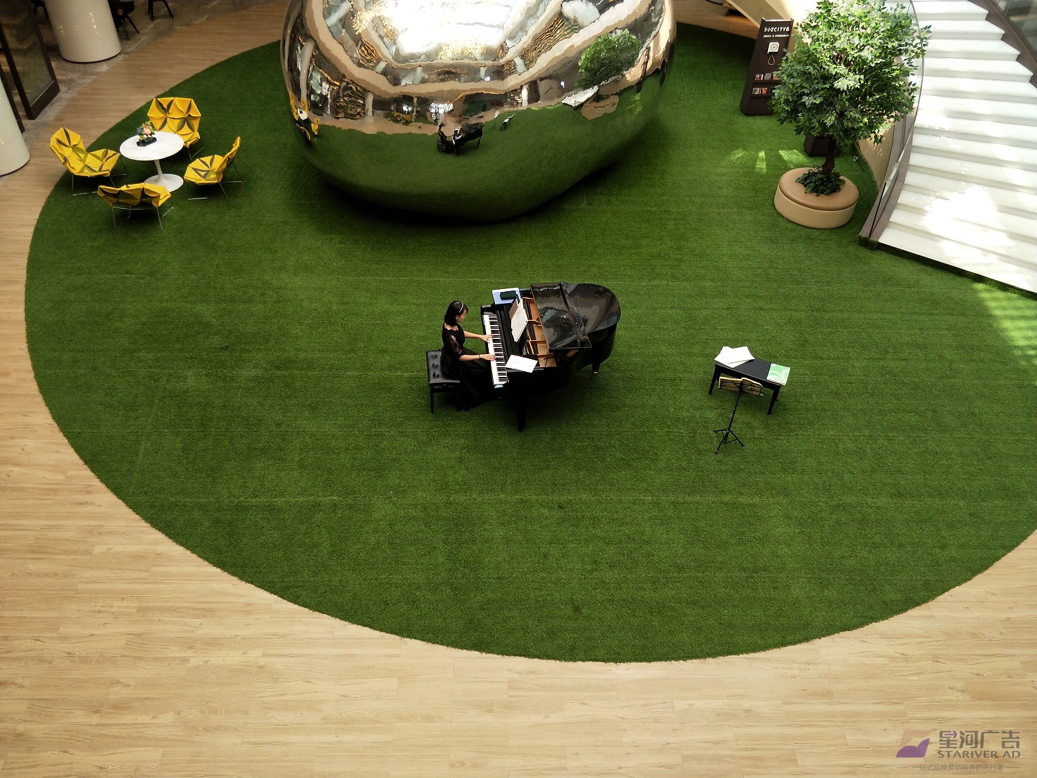 室外樂隊演出,通過樂聲吸引顧客到場,靜下心來去享受音樂。