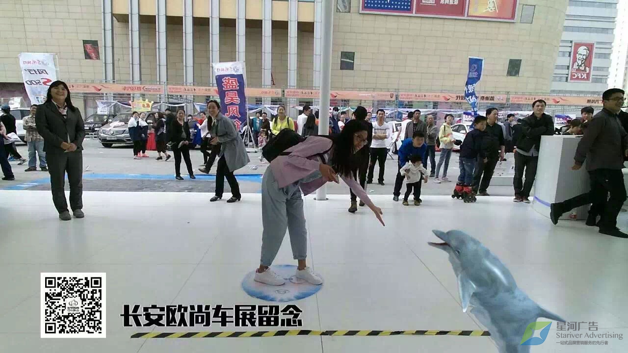 設(shè)計(jì)理念:設(shè)計(jì)《天使降臨》為主題,選拔外籍美女車模為AR攝制內(nèi)容,與觀眾互動(dòng),同時(shí)通過(guò)CG制作加入海豚、變形金剛、宇航員等內(nèi)容元素,增加趣味性,貼合不同人群興趣。無(wú)論從形式還是內(nèi)容上都做到新穎、引人注意、趣味互動(dòng)。