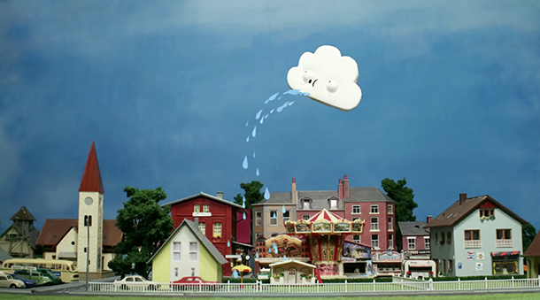 這是來(lái)自愛(ài)爾蘭IADT國(guó)際電影學(xué)院的一名叫Conor Finnegan的學(xué)生的畢業(yè)作品。他使用定格動(dòng)畫(huà)、真人動(dòng)畫(huà)和手繪動(dòng)畫(huà)的混合手法,制作了這部溫馨美好又幽默的探討人與自然相處關(guān)系的動(dòng)畫(huà)短片。動(dòng)畫(huà)講述了一朵善解人意、樂(lè)于助人的小云朵熱心幫人類解決問(wèn)題卻被有的人誤解的故事。它憨憨傻傻的樣子十分逗趣,還有各種萌翻的小表情,像個(gè)善良又調(diào)皮的孩子。配音與背景音樂(lè)也很俏皮惹人愛(ài),為短片增色不少。這么可愛(ài)萌萌噠的小云朵,都想抱一朵回家惹O(∩_∩)O~~真希望在不久的將來(lái),白云能重回藍(lán)天,我們也能找回小時(shí)候純真的記憶和心。