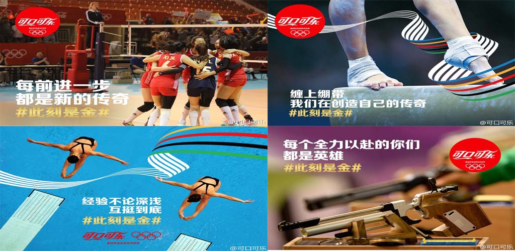 可口可樂: #此刻是金# 可口可樂可以說是奧運會的老牌贊助商了,在今年中,這四個字飽含更是人文情感的升華,由此來去挖掘奧運蘊含的體育精神之外的感情,可是說是奧運會的一股暖流,溫潤人心。
